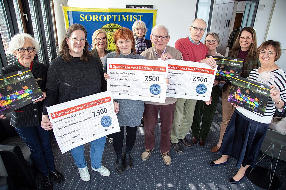 Der Club Soroptimist Recklinghausen freut sich, die erfolgreiche Scheckübergabe aus dem Kalenderprojekt 2025 bekanntzugeben. Durch die großzügige Unterstützung zahlreicher Kalenderkäuferinnen und -käufer war es erneut möglich, den Erlös an drei wichtige soziale Einrichtungen in Recklinghausen weiterzugeben. Diese Organisationen engagieren sich tagtäglich mit großem Einsatz für das Wohl von Kindern, Frauen und Familien und leisten damit einen unverzichtbaren Beitrag für unsere Gemeinschaft.